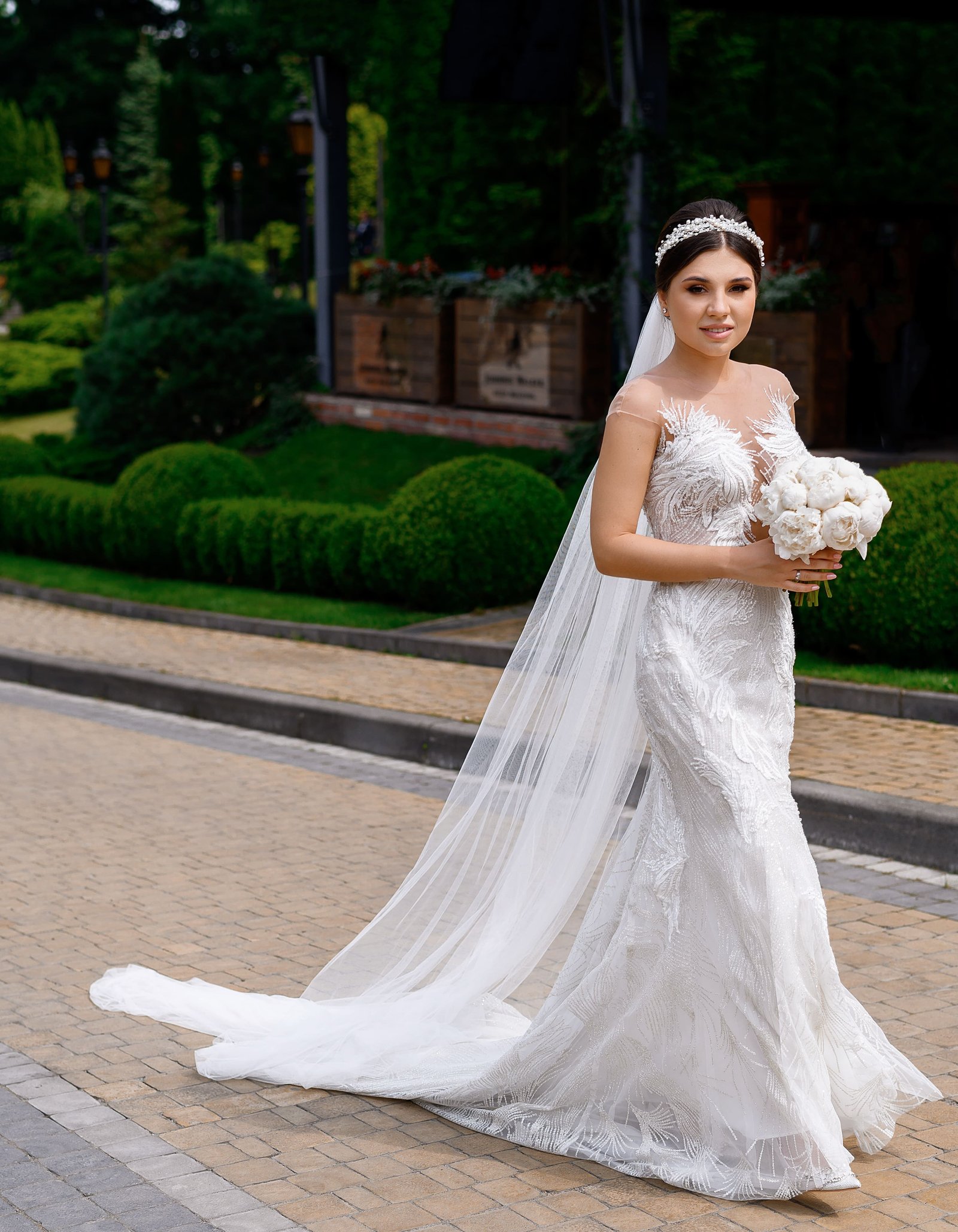 Beaded tulle with delicate illusion neckline.